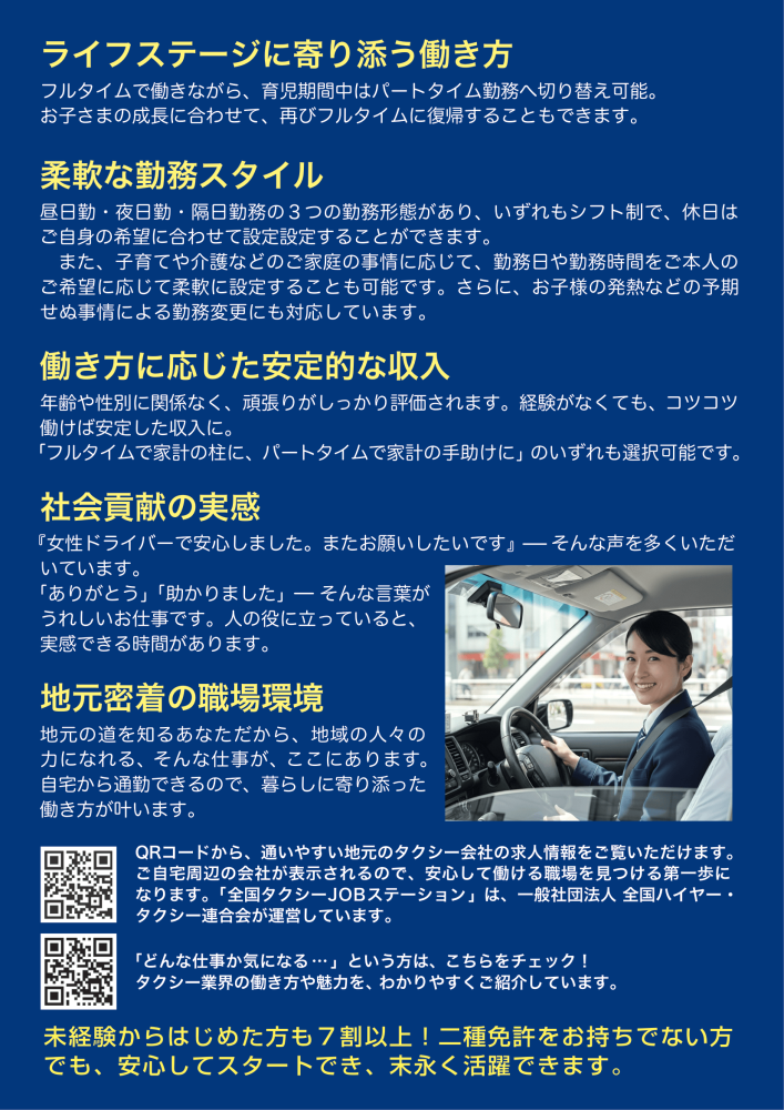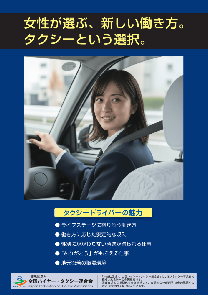 女性向け: 「女性が選ぶ、新しい働き方。タクシーという選択。」を提案。
