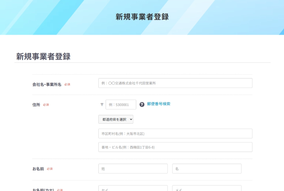 新規事業所登録フォームから、必要事項をご入力のうえ、登録申請を行ってください。